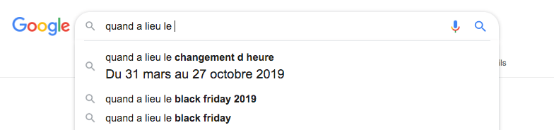 En plus de nous suggérer la fin de notre phrase, l’autocomplétion de Google y répond maintenant directement sans avoir besoin d’afficher de résultats de recherche.