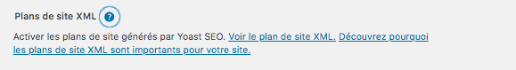 On peut accéder au sitemap en cliquant sur le point d’interrogation puis sur « Voir le plan de site XML ».