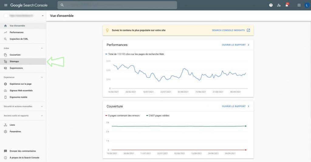- Sous « Index », cliquer sur « Sitemaps »