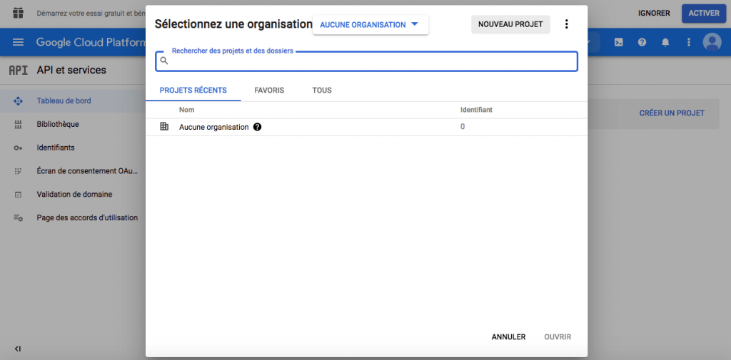 - Pour commencer, on se rend sur le lien suivant : https://console.developers.google.com/