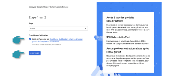 Une nouvelle page se charge et on arrive sur « Google Cloud Plateform ». Il faut suivre le processus d’inscription